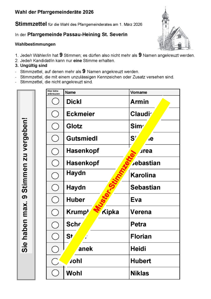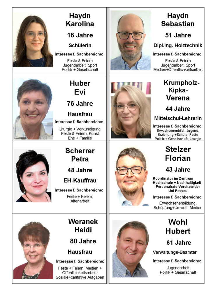 Am 28.02.2026 und am 01.03.2026 finden die Pfarrgemeinderatswahlen statt, folgende Kandidatinnen und Kandidaten stehen in Heining zur Wahl: