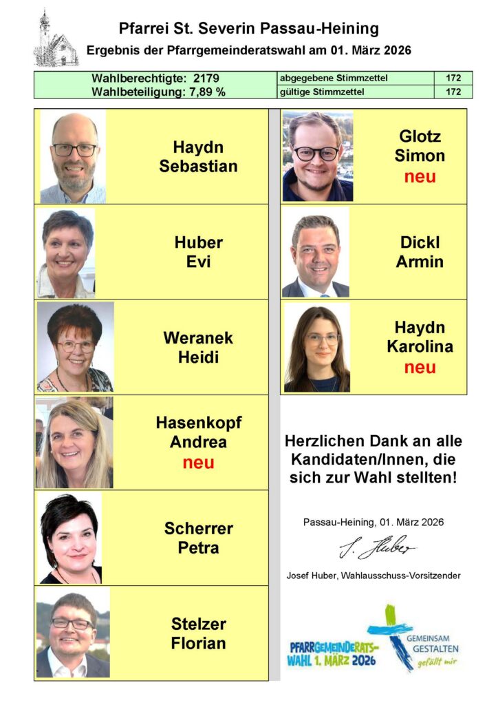 Bekanntgabe des Wahlergebnisses der Pfarrgemeinderatswahl in Heining