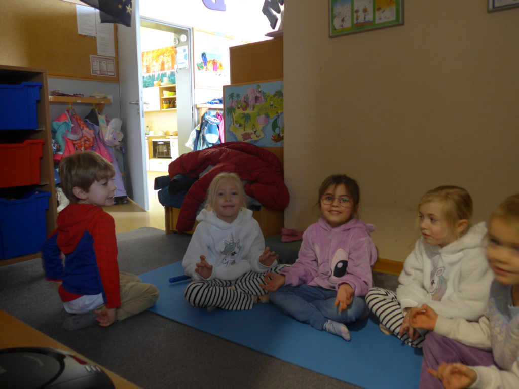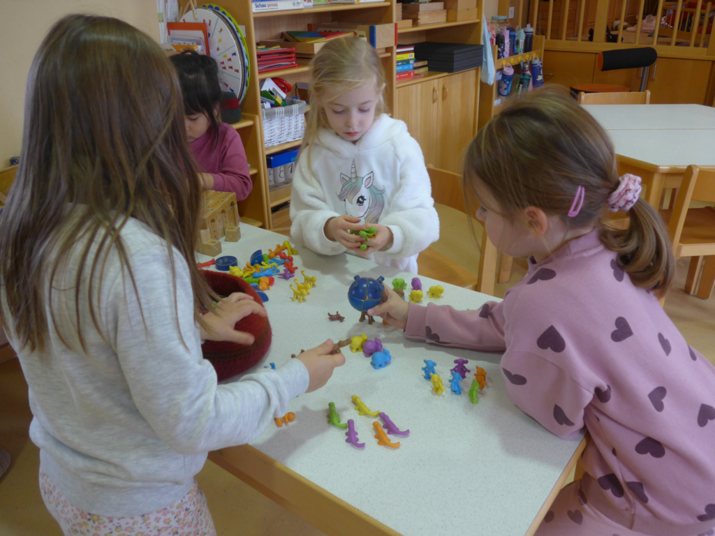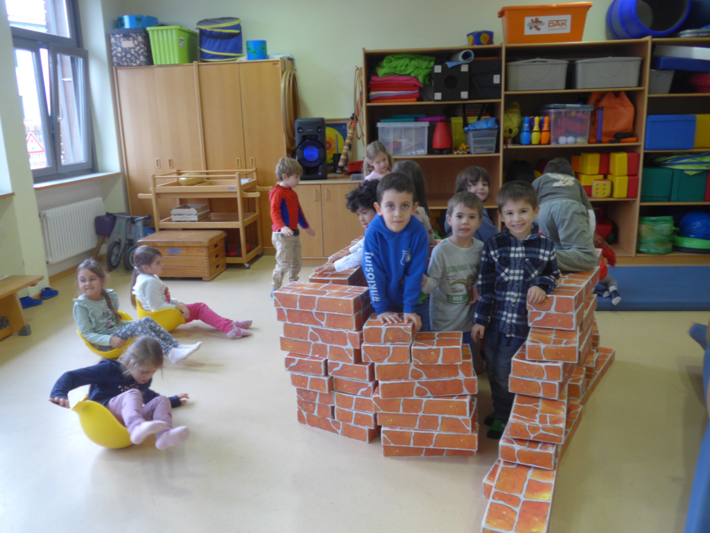 In diesem Jahr sind zum ersten Mal Vorschulklinder aus einem anderen Kindergarten bei uns zu Besuch. Mit großer Spannung haben unsere Kindergartenkinder die Besucher erwartet. Mit einem Lied wurden alle begrüßt, bevor die Spielbereiche erkundet wurden.